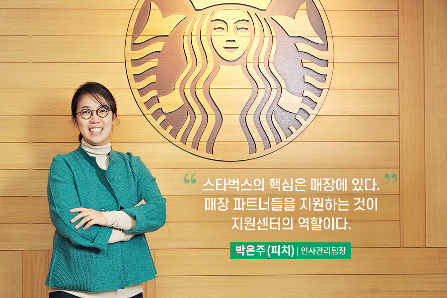 스타벅스 인사업무의 중심은 매장 파트너다. 매장운영이 사업의 핵심이고, 매장 파트너 비중이 97%에 달하는 등 매장을 중심으로 운영하기 때문이다. 인사관리팀은 이들을 지원하는 역할을 하며, 매장 지원 조직을 ‘본사’가 아닌 ‘지원센터’로 칭한다. 지원센터 인원의 절반 가까이는 매장 경험을 갖춘 인력으로 구성되어 있다.