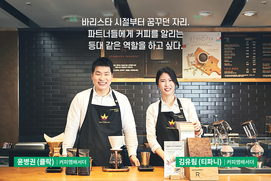 티파니) 앰배서더는 바리스타 시절부터 선망하던 자리였다. 입사 전만 해도 커피에 대한 지식은 전무했다. 입사 후에 스타벅스가 커피 뿐 아니라 지역 사회 공헌 등의 다양한 활동을 하는 걸 알게 되었고 많은 영감을 받았다. 나는 점차 그것을 커피에 담아 전달하고픈 꿈이 생겼다. 과연 내가 앰배서더의 자질을 갖춘 사람인가에 대한 많이 고민했지만, 마음만 있다면 도전하고 이룰 수 있다고 말하고 싶다.
