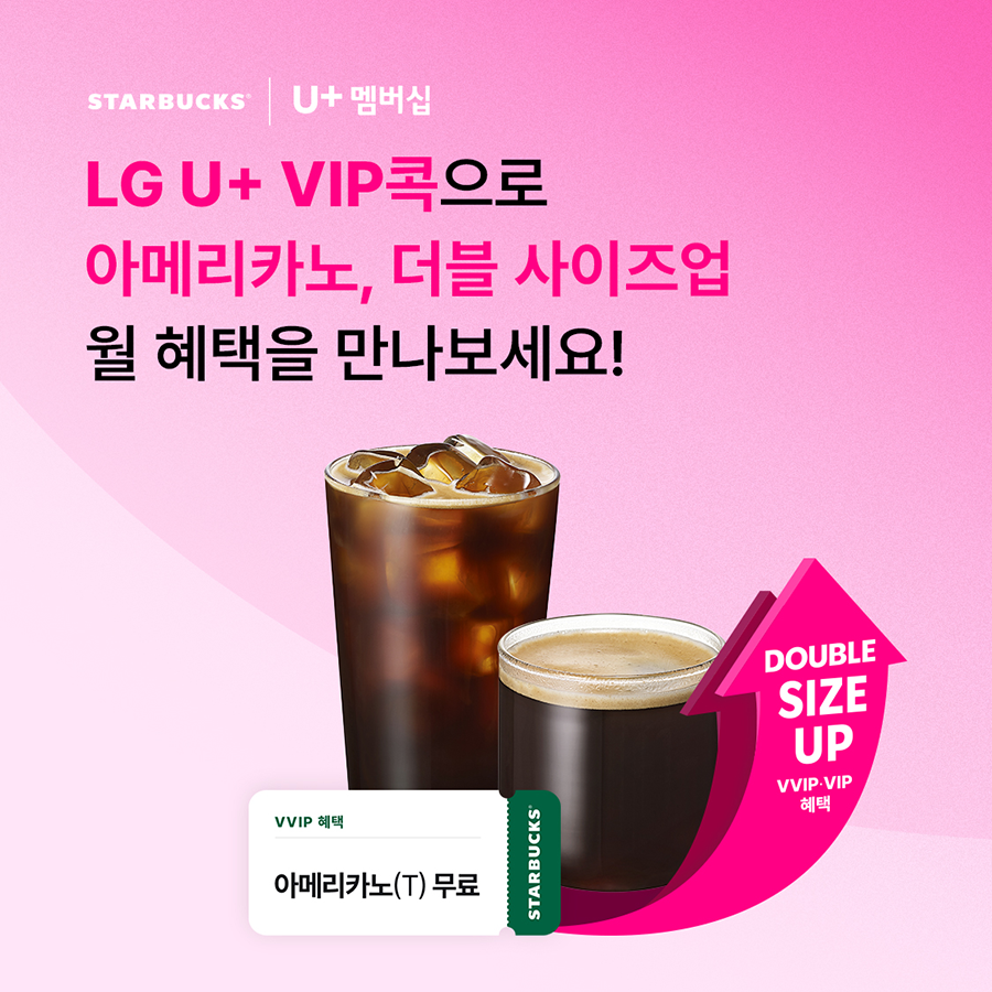 앞으로 LG유플러스의 VVIP, VIP 등급 고객은 스타벅스 톨 사이즈 아메리카노 1잔을 무료로 이용하거나, 벤티 사이즈 음료 주문 시 톨 사이즈 가격에 이용하는 더블 사이즈업 혜택 중 한 가지를 매월 1회 선택할 수 있다. VIP 고객은 더블 사이즈업 혜택을 매월 1회 이용할 수 있다.