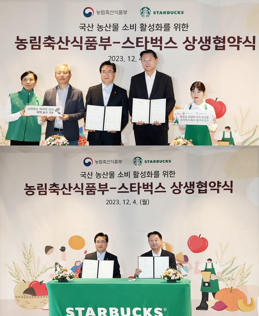 스타벅스 코리아(대표이사 손정현)가 12월 4일 농림축산식품부(정황근 장관)와 함께 국산 농산물 소비 활성화를 위한 상생 협력 업무 협약식을 진행했다.