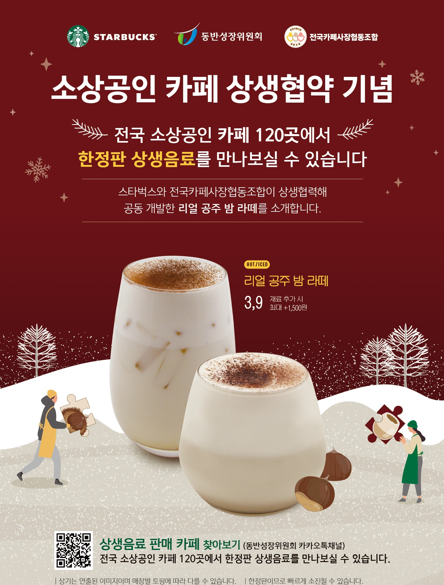 MEDIA 글자 크기 보통 크게 아주 크게 공유하기 페이스북 X 카카오톡 링크 복사 링크 복사됨 도구 보기 이미지 다운로드 스타벅스, 전국 소상공인 카페 120곳에 두 번째 상생음료 ‘리얼 공주 밤 라테’ 출시 2022.11.28 SCK COMPANY
