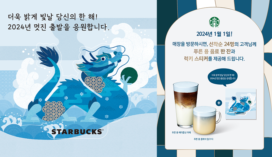 무료 음료와 함께 2024년을 응원하는 의미의 럭키 스티커도 제공한다. 럭키 스티커는 갑진년을 상징하는 푸른 용의 이미지가 그려져 있으며 “더욱 밝게 빛날 당신의 한 해! 2024년 멋진 출발을 응원합니다” 라는 문구를 더해 고객에 대한 응원 메시지를 함께 담았다.