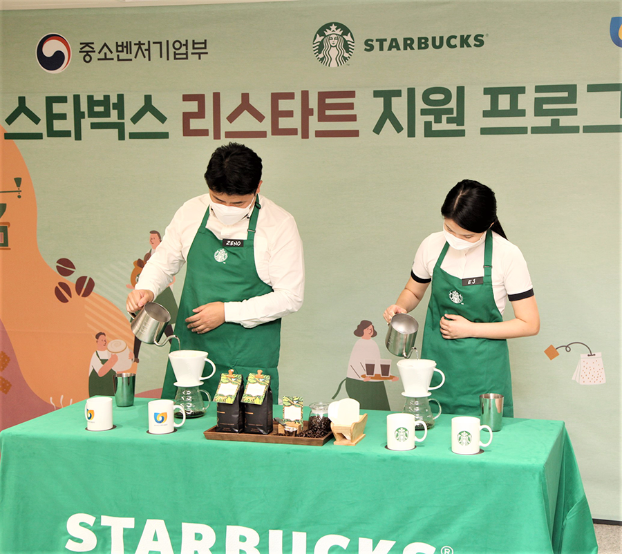 ‘리스타트 지원 프로그램’은 2020년 5월 스타벅스가 중소벤처기업부와 맺은 13호 자상한 기업 업무 협약 관련 상생 프로그램의 일환으로 스타벅스의 전문적인 바리스타 교육 및 운영 노하우 전수 등을 통해 40대 이상 재기 소상공인의 취업이나 카페 재창업을 지원하는 프로그램이다.