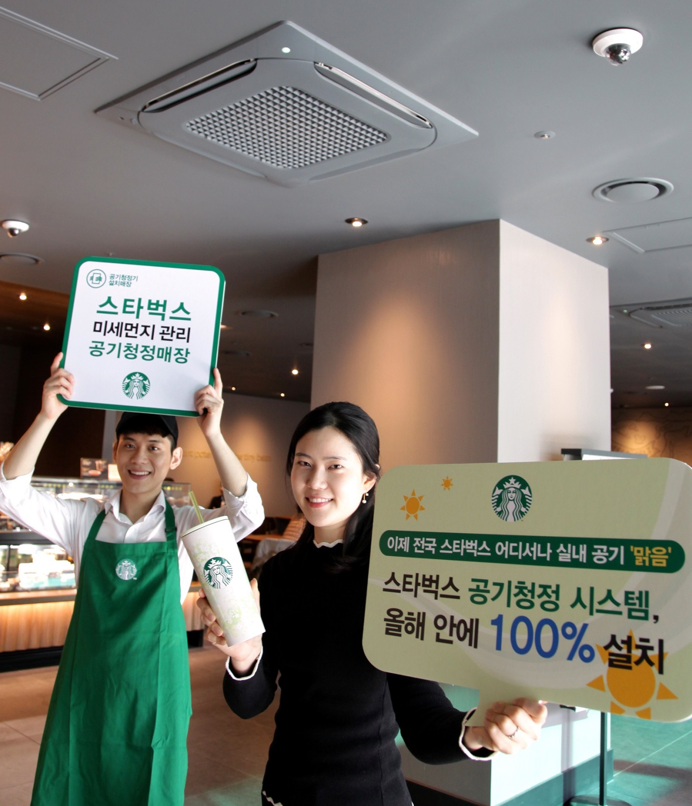 스타벅스는 원래 향후 2년간에 걸쳐 공기청정 시스템을 전국 매장에 확대한다는 계획이었으나, 최근 미세먼지에 대한 이슈가 사회적 문제로 꾸준히 화두에 오르며, 고객의 편안한 스타벅스 경험과 파트너들의 쾌적한 근무 환경 조성을 위해 전국 매장의 공기청정 시스템 설치를 올 연말까지로 앞당기게 되었다.