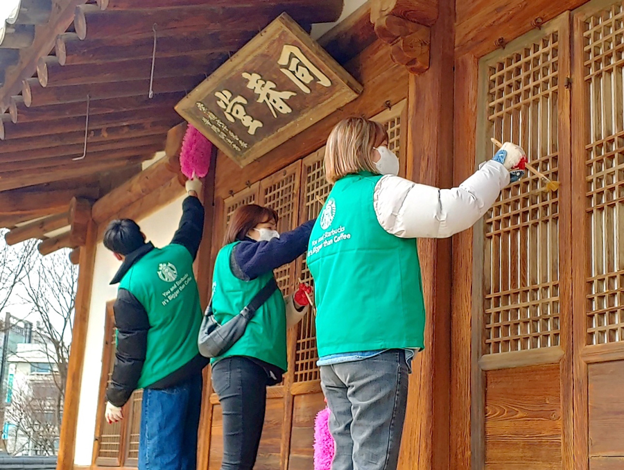스타벅스는 올해 1월 덕수궁 석조전을 시작으로 서울(덕수궁 석조전∙중명전, 이상의 집), 수원(수원화성), 대전(동춘당, 소대헌∙호연재 고택), 인천(인천향교), 부산(금정산성, 문화공감수정), 광주(무양서원), 대구(경상감영공원)에서 환경 정화, 고택 마루 보전 등의 다양한 봉사 활동을 이어갔다.