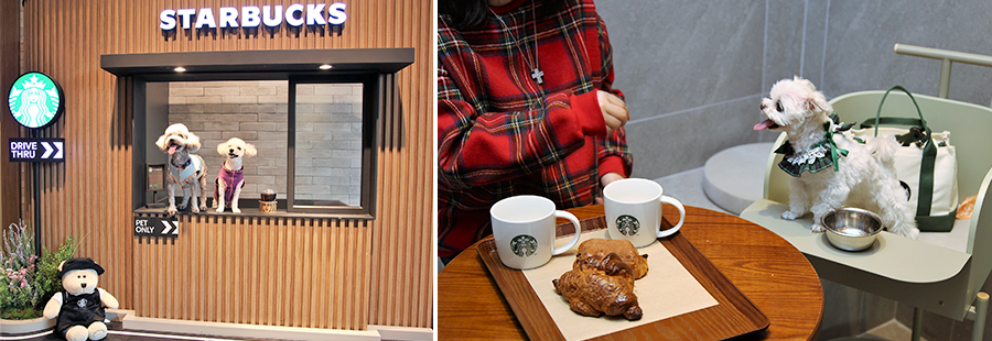또한 펫 전용 공간에는 스타벅스 드라이브 스루를 모티브로 한 포토존을 마련하여 반려동물과 동반한 고객이 소중한 추억을 남길 수 있도록 했다.
