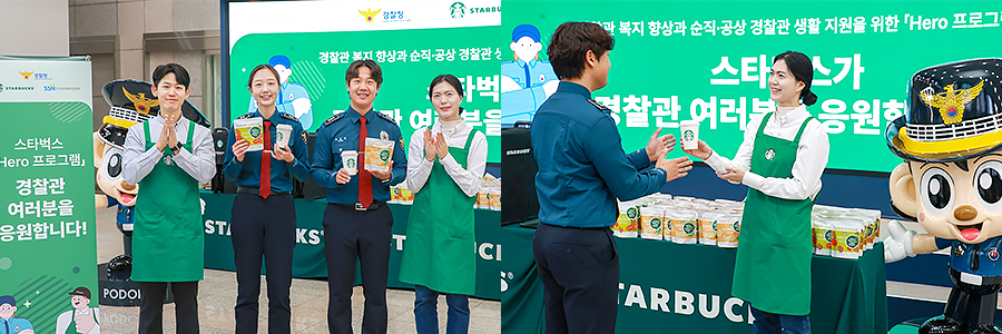 또한 스타벅스는 전국 우수 경찰관서 근무자를 대상으로 약 7,100잔의 커피와 푸드를 제공하여 현장에서 국민 안전을 위해 헌신하는 경찰관들의 사기 증진을 지원할 계획이다.