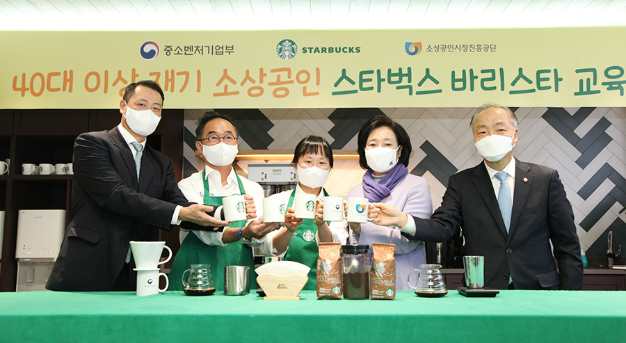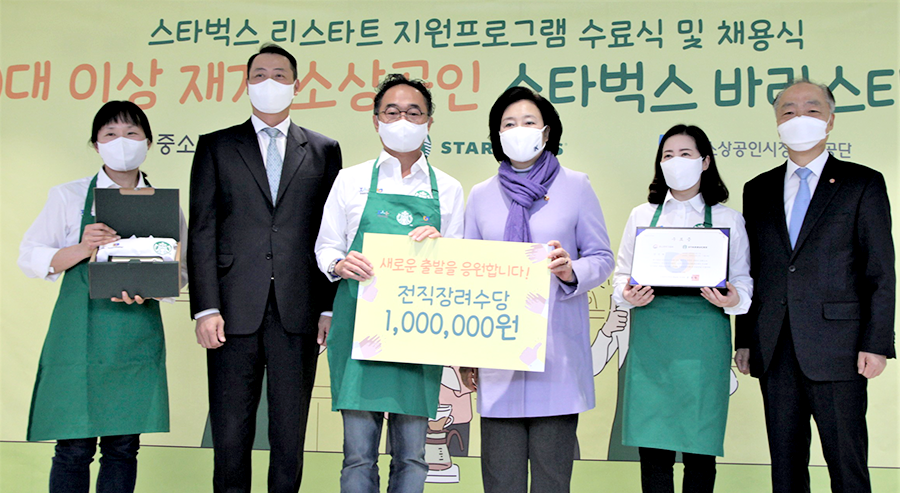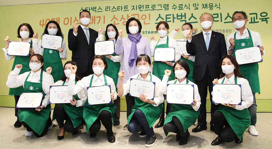 ㈜스타벅스커피 코리아(대표이사 송호섭)가 중소벤처기업부(장관 박영선), 소상공인시장진흥공단(이사장 조봉환)과 함께 대한민국 40대 이상 소상공인의 카페 창업과 스타벅스 취업을 지원하는 ‘스타벅스 리스타트 지원 프로그램’에 뜻 깊은 결실을 맺었다.
