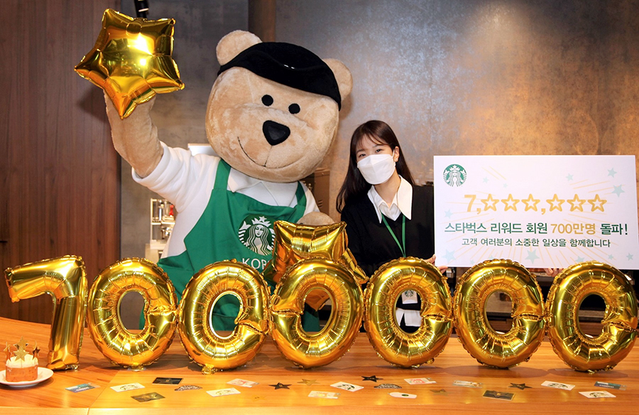 또한, 700만명 회원들이 적립한 리워드 별의 개수는 누적으로 9억2천만개를 넘어섰으며, 회원 전용 생일 음료 쿠폰을 비롯해 별 12개 마다 제공하는 무료 음료 혜택이 8천5백만잔을 기록했다. 연령대별 신규 회원 가입 비중은 30대가 38%를 차지하면서 가장 높았으며, 20대 이하가 25%, 40대가 26%를 차지한 것으로 나타났다.