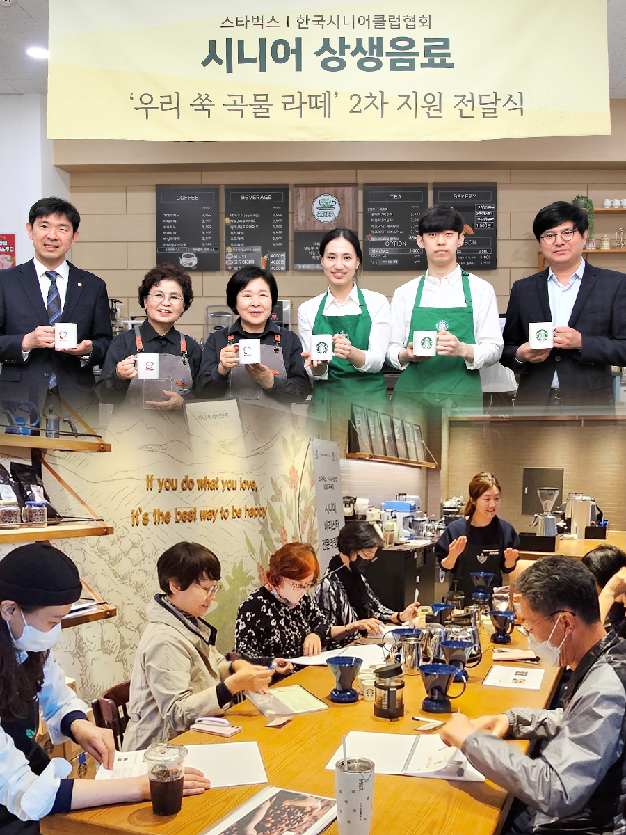 스타벅스 코리아는 한국시니어클럽협회와 함께 시니어 바리스타가 근무하는 지역 카페를 위한 ‘시니어 상생음료’를 개발해 2022년 10월부터 한국시니어클럽협회의 회원기관이 운영하는 카페 150여 곳에 국내산 쑥과 곡물을 활용한 ‘우리 쑥 곡물 라떼’를 선보였다.