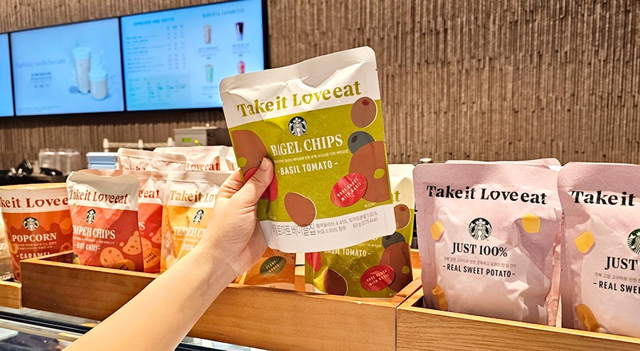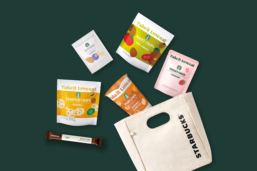 스타벅스는 론칭 당시 Take it Love eat 문구가 새겨진 전용 패키지를 선보이고, ‘바질 토마토 베이글칩’, ‘오리지널 템페칩’ 등 신상품 출시와 함께 기존 인기 상품들의 패키지 리뉴얼을 순차적으로 진행했다.