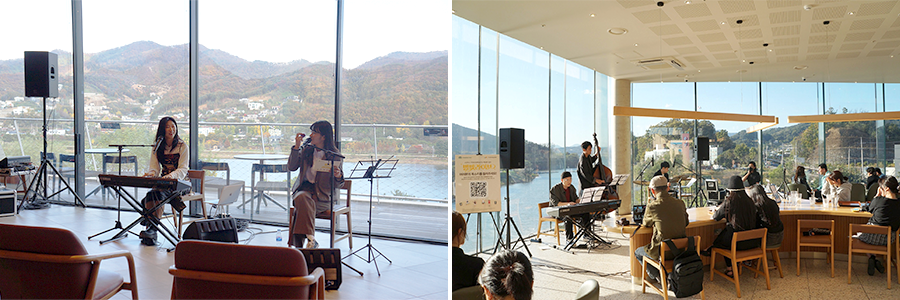 ‘더양평DTR점’과 ‘더북한강R점’은 스타벅스의 더 매장으로 자연경관을 하나의 인테리어로 활용한 특화매장이다. 두 매장은 넓은 통창을 뒤로하여 ‘별빛라이브’ 공연이 진행되는 만큼 탁 트인 자연경관과 함께 공연을 감상할 수 있다.