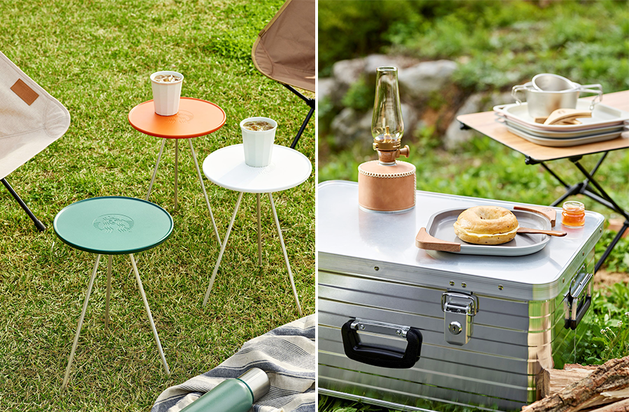 그린, 아이보리, 브릭 오렌지 3가지 색상으로 구성된 ‘스타벅스 사이드 테이블’은 스타벅스 고유의 감성이 담긴 특별한 컬러와 디자인에 헬리녹스의 탁월한 기술력이 더해져 제작되었으며, 컴팩트한 캠핑용 테이블로 가볍고 설치가 간편해 다양한 공간에서 활용할 수 있다.
