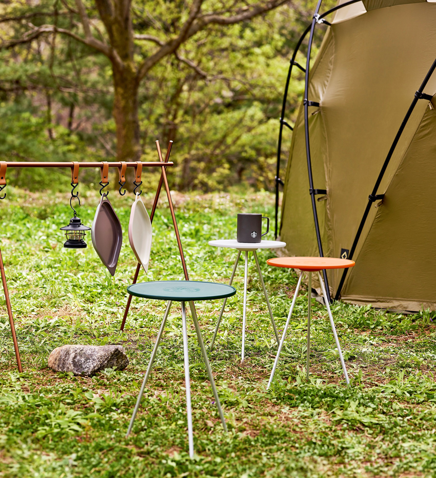 올해에는 헬리녹스와 협업한 ‘스타벅스 사이드 테이블‘ 3종과 네오플램과 협업한 ‘스타벅스 팬앤플레이트’ 2종 등 총 5종의 증정품을 선보였다. 그린, 아이보리, 브릭 오렌지 3가지 색상으로 구성된 ‘스타벅스 사이드 테이블’은 스타벅스 고유의 감성이 담긴 특별한 컬러와 디자인에 헬리녹스의 탁월한 기술력이 더해져 제작되었으며, 컴팩트한 캠핑용 테이블로 가볍고 설치가 간편해 다양한 공간에서 활용할 수 있다.