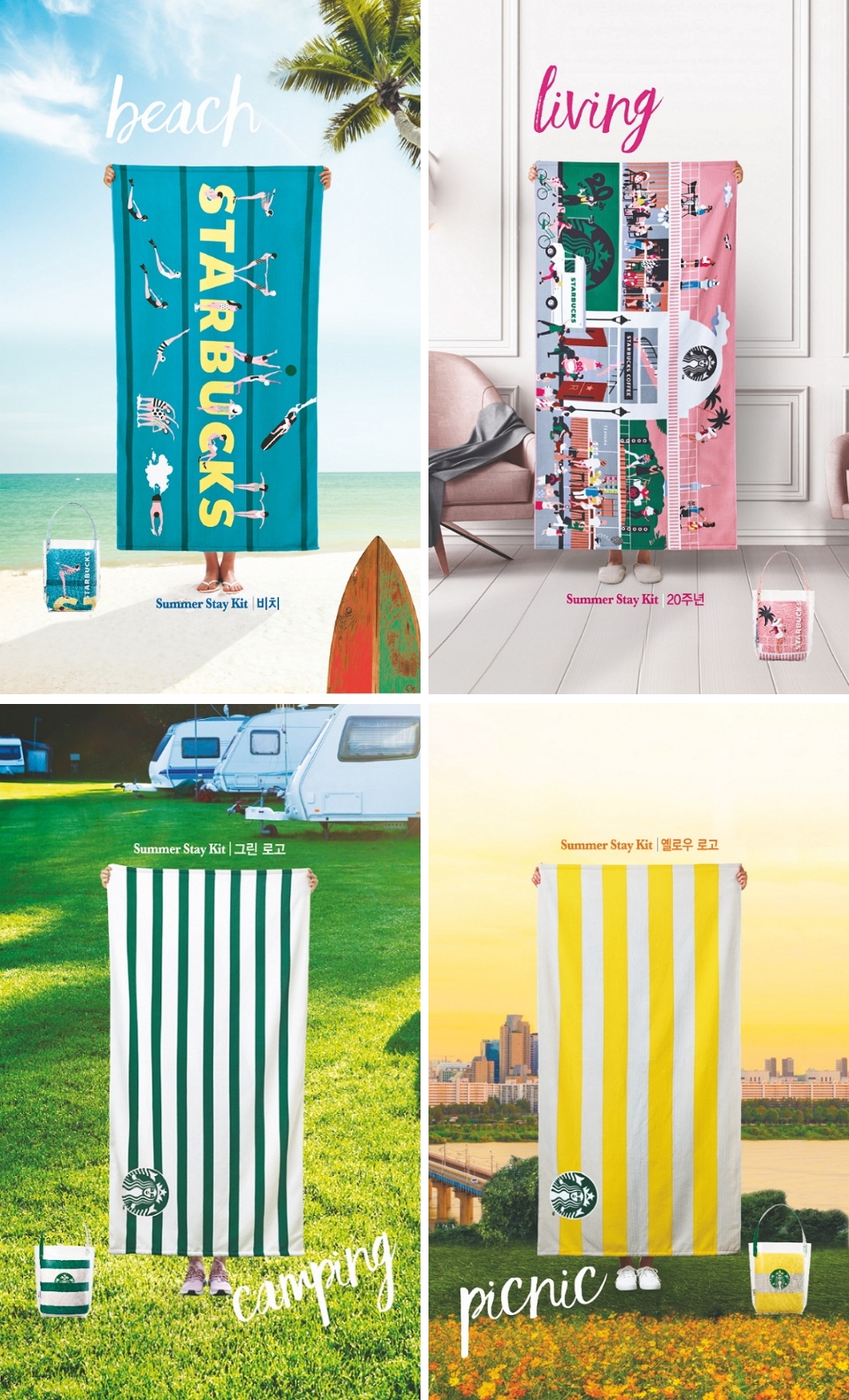 ‘2019 서머 스테이 킷’은 구성된 비치 타월과 전용 백의 디자인에 따라 ‘비치’, ‘20주년’, ‘그린 로고’, ‘옐로우 로고’의 4종으로 구분되며 이중 한 가지를 선택할 수 있다.