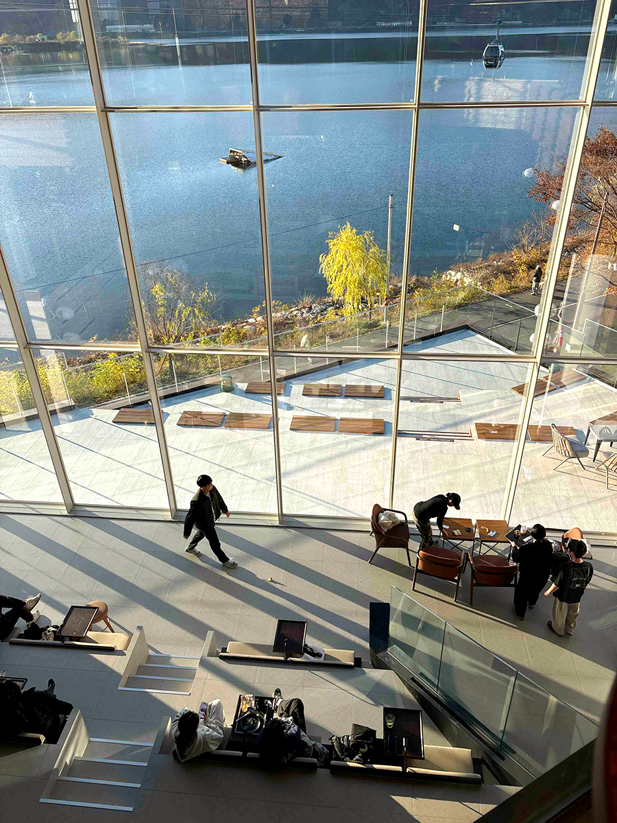 매장 내부에서 가장 인기 있는 공간은 매장 2, 3층에 위치한 스타디움 좌석으로 매장 전면 전체를 초대형 통유리창을 구성해 압도적인 의암호의 호수 전경을 감상할 수 있으며, 해당 공간에서 프랑스의 럭셔리 하이엔드 오디오 드비알레 스피커를 통해 고음질의 청음 프로그램을 감상할 수 있다.