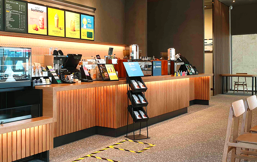특히, 휠체어 이용 고객이 음료 주문 및 수령 시, 파트너와 보다 원활한 의사소통을 할 수 있도록 주문 구역과 음료 제공 구역 아래쪽에 공간을 둔 특별한 바(bar) 디자인을 채택했다.