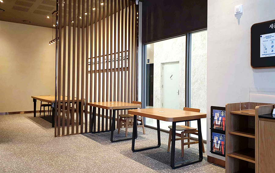 스타벅스 세종충남대학교병원점은 매장 내 휠체어 진출입이 용이하도록 매장 내 충분한 이동 동선을 고려해 가구 및 기물을 배치하고, 휠체어 이용 고객이 편리하게 사용할 수 있도록 테이블 높이를 맞춘 휠체어 배려 좌석을 갖추고 있다.