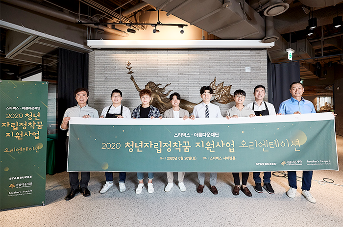 ㈜스타벅스커피 코리아(대표이사 송호섭)가 지난 20일 아름다운재단과 함께 보호종료청년 들의 자립과 꿈을 지원하기 위한 ‘2020 청년 자립정착꿈 지원사업’의 본격적인 시작을 알리는 발대식을 갖고, 청년들의 실질적인 자립을 위한 지원활동을 이어나간다.