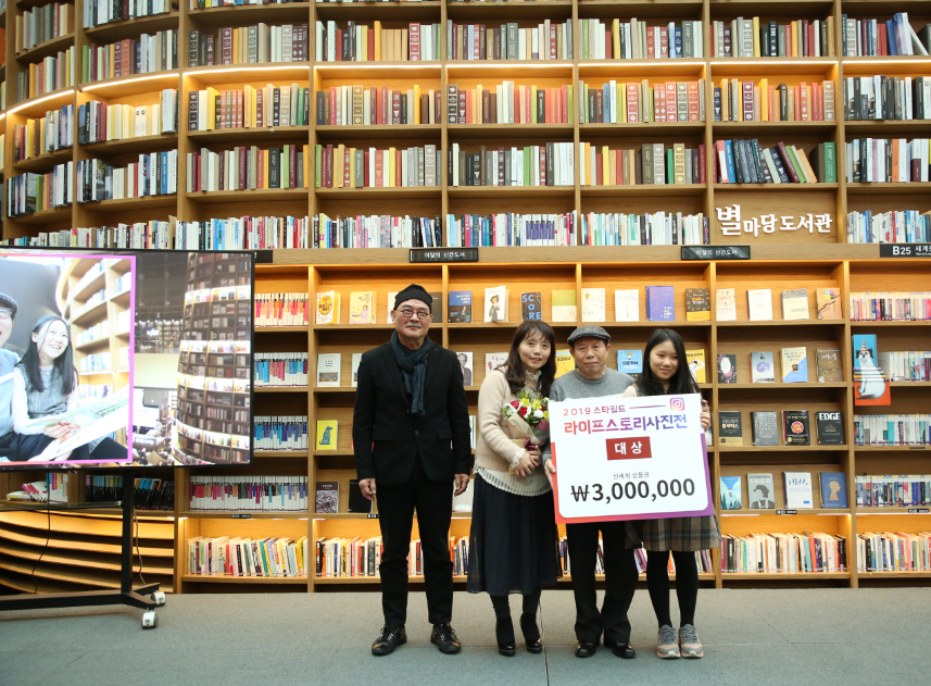 대상을 수상한 아이디 pinkjy**님은 오랜만에 서울에 올라오신 부모님을 모시고 딸과 함께 방문한 별마당도서관에서 부모님과 딸이 함께 책을 읽으며 행복한 표정을 짓는 찰나의 순간을 촬영해 수상의 영광을 안았다.