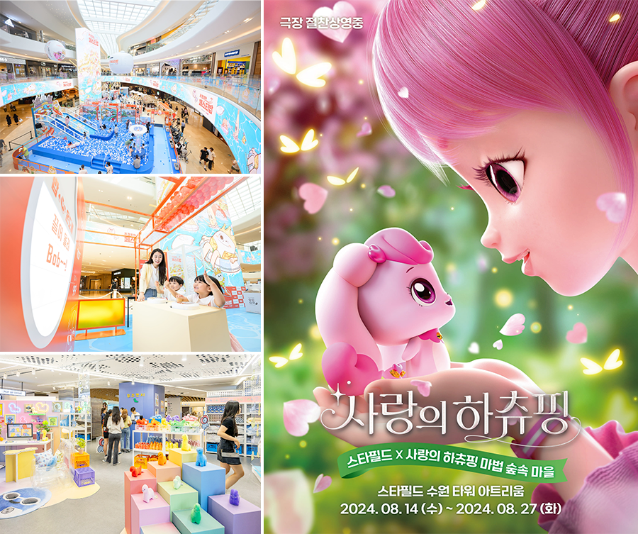 어린이 안방 극장을 차지하고 있는 인기 애니메이션 ‘캐치! 티니핑’ 친구들도 8월 14일부터 27일까지 스타필드 수원에서 만나 볼 수 있다. 운명의 소울메이트를 찾아 모험에 나선 로미와 하츄핑의 첫 만남을 그린 SAMG엔터의 핵심 IP ‘캐치! 티니핑’의 첫 번째 극장판 ‘사랑의 하츄핑’ 개봉 기념 팝업 스토어가 열린다.