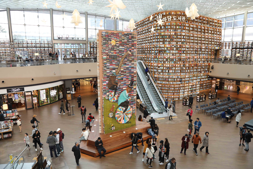 먼저, 강남 문화 명소로 자리 잡은 스타필드 코엑스 별마당 도서관에는 도서관의 크리스마스란 주제로 1만 4천여 권의 책을 쌓아 9m 높이로 만든 초대형 설치 미술 작품인 ‘별마당 북트리’를 선보인다.