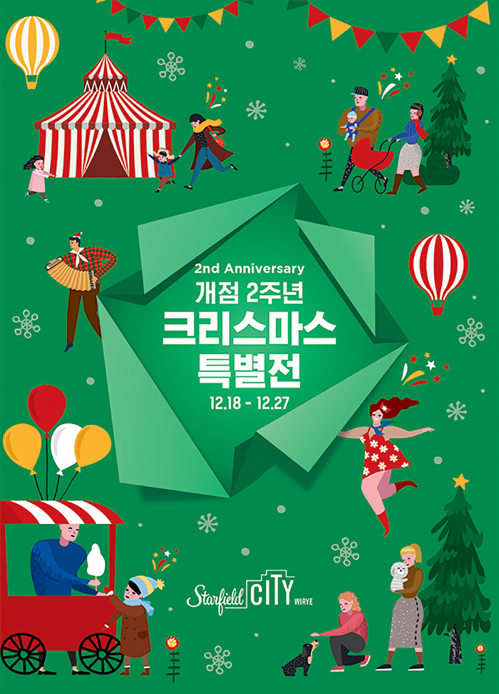 스타필드 시티 위례가 오픈 2주년을 맞아 고객 성원에 보답하기 위해 ‘개점 2주년 크리스마스 특별전’을 18일부터 27일까지, 총 10일간 진행한다. 이번 행사는 코로나19 장기화로 어려운 상황에 놓인 입점 매장들의 매출 활성화를 돕고, ‘코로나 블루’를 겪고 있는 고객들에게 쇼핑의 즐거움을 선사하기 위해 마련됐다. 2018년 12월 문을 연 스타필드 시티 위례는 신세계프라퍼티가 선보인 첫 스타필드 시티로, 오픈 이래 고객들의 발길이 끊임없이 이어지고 있다.