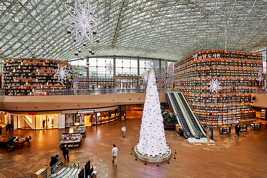 별마당 도서관의 크리스마스 트리는 프랑스 라파예드 백화점 등 전 세계 명소의 대형 트리를 제작해온 벨기에 왕실 인증기업 ‘글로벌 콘셉트(Globall concept)’와의 협업을 통해 완성됐다. 해외여행이 어려워진 요즘, 일년 중 가장 화려한 유럽의 크리스마스 풍경을 놓쳐 아쉬워하는 고객들에게 유럽의 감성을 그대로 담은 별마당 도서관의 ‘실버 트리’는 마치 유럽에 온 듯한 힐링과 위안의 시간을 선물할 것으로 보인다.