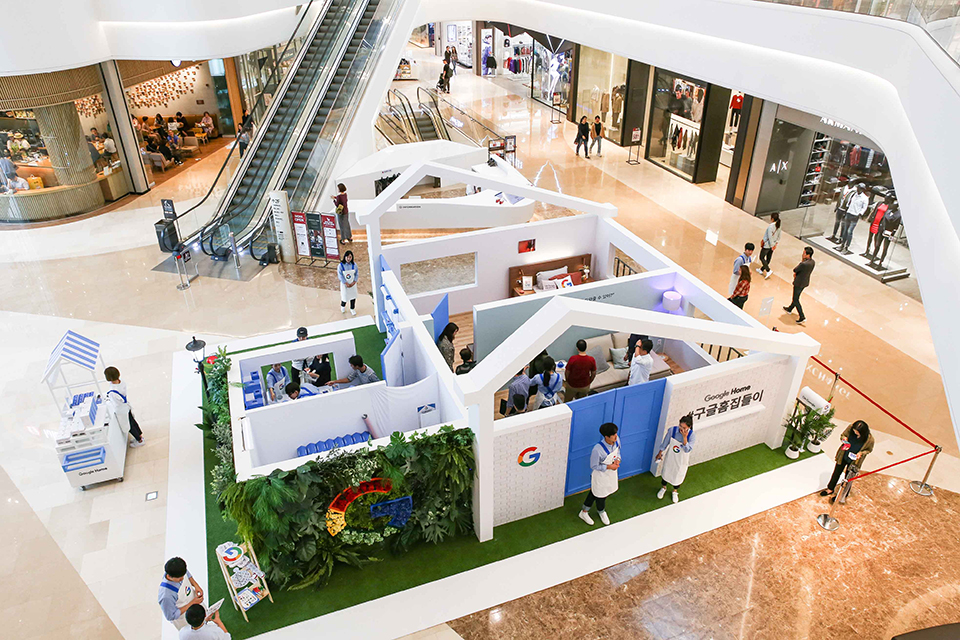 이번 구글 홈 체험 부스는 명절 기간 새롭게 국내에 진출한다는 것을 착안해 한국의 전통적인 문화인 ‘집들이’란 주제로 체험존을 설치했으며, 거실과 침실 공간으로 꾸며진 집 공간의 체험존에서 실생활 내 구글 홈의 성능을 체험해 볼 수 있도록 구성됐다.