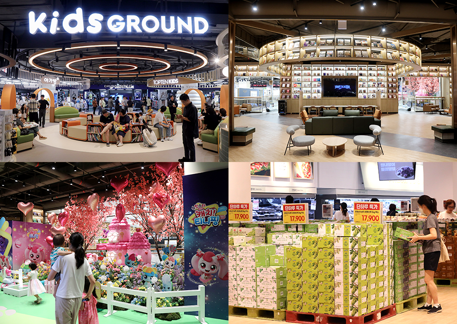 지금까지 매장 규모를 늘리고 판매시설을 촘촘히 배치하는데 집중해온 과거의 방식에서 과감히 벗어나, 핵심 공간을 고객들에게 온전히 제공하고 그 공간을 다채로운 참여형 프로그램으로 채움으로써 휴식-체험-쇼핑이 어우러지는 ‘미래형 마트 모델’을 제시한 것이다.