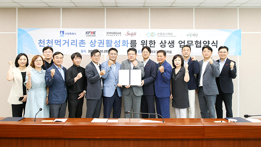 각 협약 주체는 천천먹거리촌 상권 활성화를 위한 소상공인 지원책 발굴 및 관련 사업 운영과 소상공인 지원을 위한 다각적인 홍보 추진 및 유·무형 자원 공유를 약속했다.
