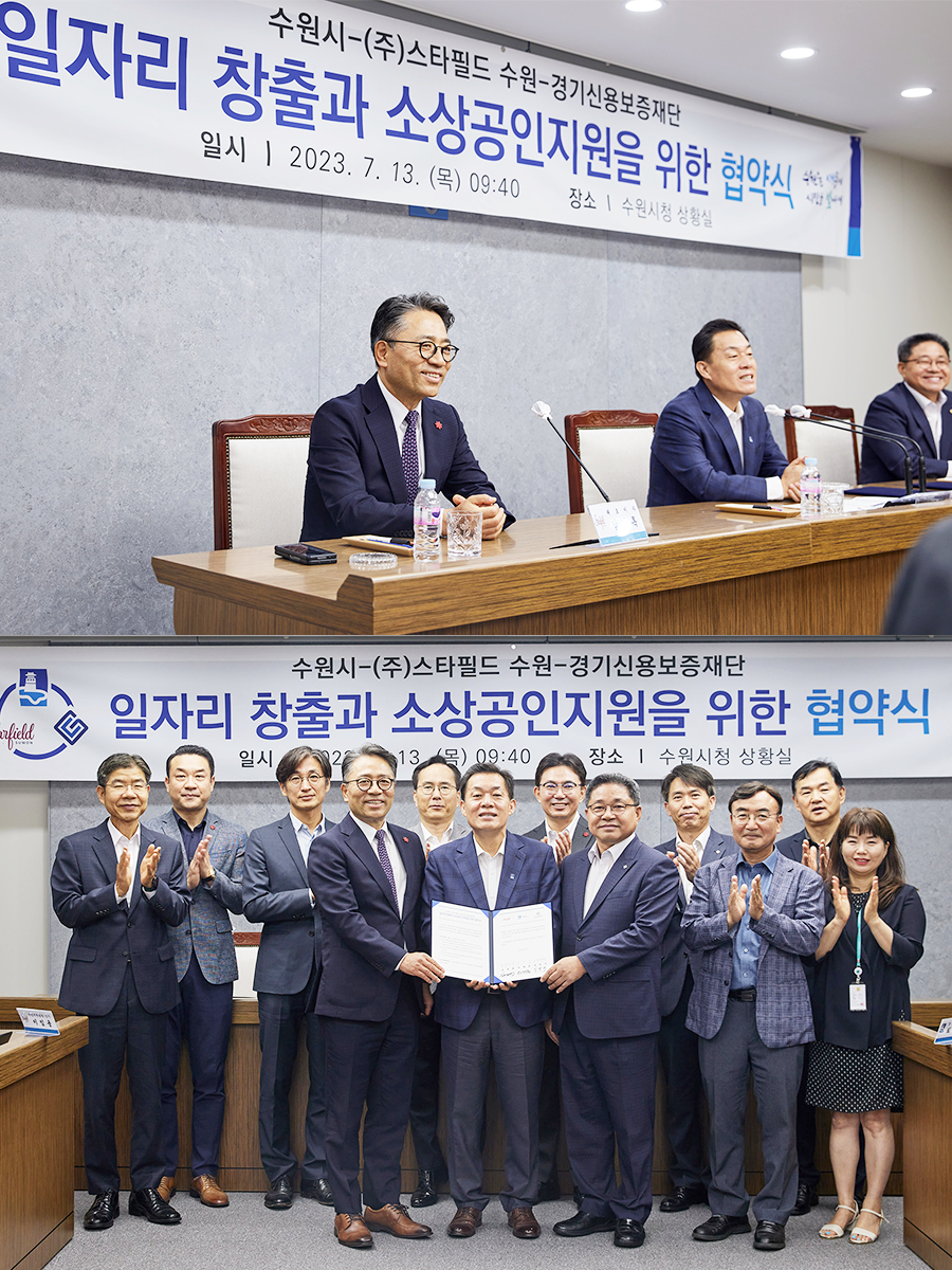 수원시청에서 열린 협약식에는 이재준 수원특례시장, 엄창석 경기신용보증재단 전략부문 이사, 임영록 신세계프라퍼티 대표이사 등이 참석해 수원시와 스타필드의 동반성장을 위한 상호 협력에 뜻을 모았다.