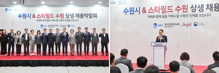 행사 축사에서 이재준 수원시장은 “스타필드 수원 1월 오픈 예정으로 지역 경제 발전에 많은 도움이 될 것으로 기대한다”며 “박람회 참여 기업들이 수원시의 귀한 인재들과 좋은 인연을 맺었으면 한다. 넘쳐나는 일자리 속에 시민들, 기업인들 모두 웃을 수 있도록 더 열심히 뛰겠다”고 밝혔다.