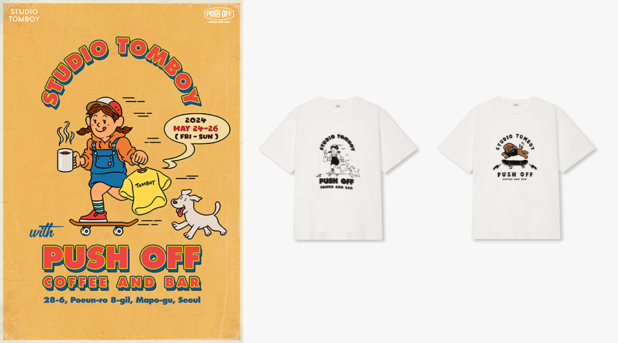 스튜디오 톰보이는 이달 26일까지 서울 망원동에 위치한 ‘푸쉬오프 커피앤바(이하 푸쉬오프)’에서 ‘톰보이 티셔츠’를 테마로 한 브랜드 체험 공간을 운영한다.