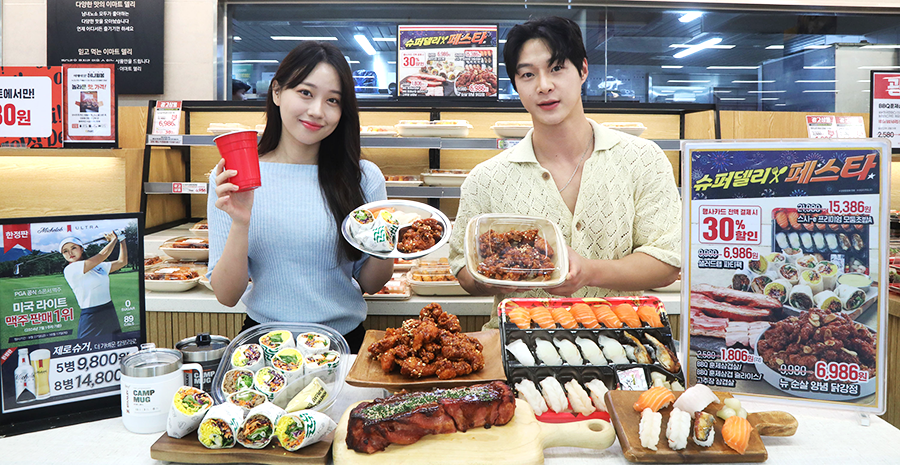 대표적으로 ‘뉴 순살 양념 닭강정(팩, 9,980원)’은 6,986원에, ‘샐러드랩 파티팩(498g, 9,980원)’은 6,986원, ‘스시-e 프리미엄 모둠초밥A(18입, 21,980원)’은 15,386원에 판매한다.