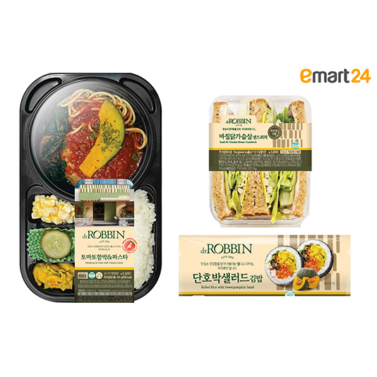 이마트24, 웰니스 다이닝 브랜드 ‘닥터로빈’과 손잡고 콜라보 상품 출시이마트24가 웰니스 다이닝 ‘닥터로빈’과 콜라보 한 건강 간편식 3종을 선보인다. 이마트24는 이달 18일(화)부터 ▲단호박샐러드 김밥(3,400원) ▲바질닭가슴살샌드위치(3,800원) ▲토마토함박&파스타(5,900원)을 판매한다.
