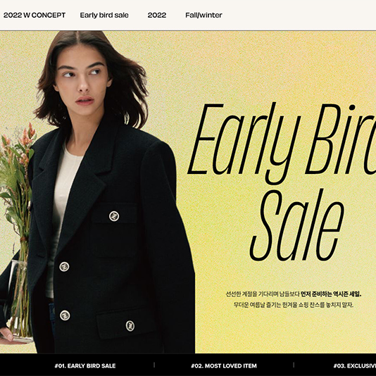 W컨셉, ‘역시즌’ 수요 겨냥해 겨울철 의류 1만 2천 종 푼다W컨셉은 8월 14일까지 2주간 역시즌 할인 행사인 ‘얼리버드 세일’ 기획전을 열고 200여 개 브랜드와 12,500여 종의 상품을 큐레이션해 최대 80% 할인한 가격에 선보인다고 2일 밝혔다.