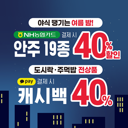 “‘스테이케이션’이 대세! 집콕족 잡아라~” 출출한 저녁시간, 이마트24로 오세요~이마트24는 8월 한달 간, 야간 시간대 안주, 도시락/주먹밥 할인 이벤트를 진행한다. 사회 분위기에 맞춰 집에서 영화, 스포츠경기를 관람하면서 즐길 수 있는 간편 먹거리를 야간 시간에 할인함으로써 고객들이 이마트24를 찾게 하겠다는 전략이다.