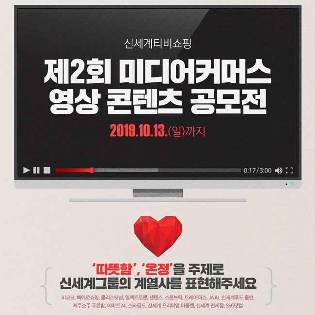 제2회 미디어 커머스 영상 콘텐츠 공모전신세계TV쇼핑이 오는 10월 13일(일)까지 미디어 커머스 콘텐츠 크리에이터를 모집하는 `제2회 미디어 커머스 영상 콘텐츠 공모전`을 진행한다. 신세계TV쇼핑은 유통과 미디어가 결합된 T커머스 업태의 차별화된 경쟁력을 알리고, 톡톡튀는 아이디어를 가진 크리에이터 발굴을 위해 작년 ‘미디어 커머스 콘텐츠 공모전’을 개최했다.