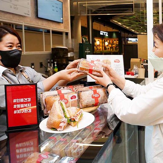 이제 구내식당에서도 대체육을 맛볼 수 있게 됐다. 27일 신세계푸드는 서울 중구 을지로 SKT타워 지하 구내식당에서 SK텔레콤(이하 SKT) 임직원들을 대상으로 자사의 대체육 ‘베러미트(Better Meat)’의 콜드 컷 슬라이스 햄을 활용한 샌드위치를 제공하기 시작했다고 밝혔다.