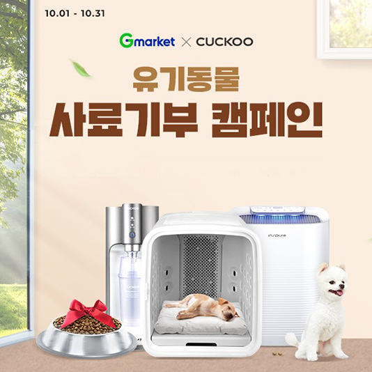 G마켓·옥션, 쿠쿠와 함께 렌탈 기부 캠페인 진행국내 대표 온라인 마켓플레이스 G마켓과 옥션이 쿠쿠와 함께 ‘유기동물 사료기부 캠페인’을 열고, 렌탈 기부 프로젝트를 진행한다.