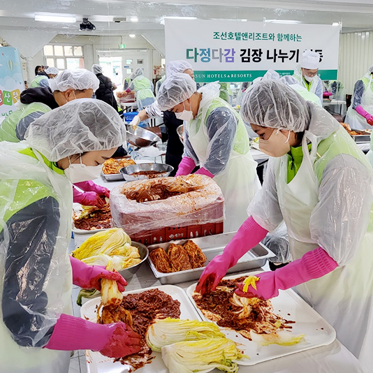 조선호텔앤리조트, ‘다정다감 김장나누기’ 봉사활동 펼쳐조선호텔앤리조트가 11월 24일(목) 남산원에서 진행한 ‘다정다감 김장나누기’ 봉사활동을 통해 김장김치 300포기를 사회복지법인 남산원에 기부했다.