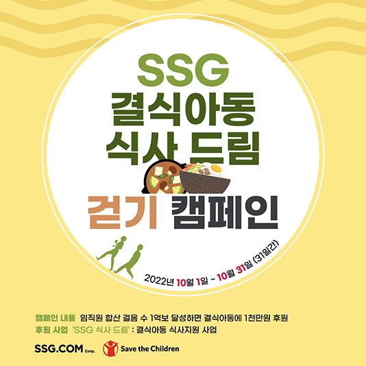 SSG닷컴, 임직원 걷기 캠페인 성료… 결식아동 식사지원 위해 기부 나선다SSG닷컴이 전 임직원이 참여하는 ‘쓱 드림 걷기 캠페인’을 지속적으로 진행하고 다양한 임직원 참여형 기부 활동을 통해 ESG 경영을 강화하며 나눔 실천에 임하고 있다.