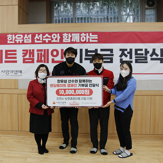 SSG랜더스 한유섬, ‘랜딩메이트 캠페인’ 통해 보호종료 아동 자립 지원SSG랜더스의 한유섬 선수가 올 시즌 보호 종료 아동의 자립지원을 위해 ‘랜딩 메이트 캠페인’을 통해 적립한 기부금을 인천사회복지공동모금회에 전달했다.