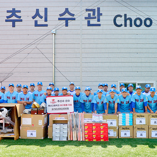 SSG랜더스의 추신수 선수가 지난 20일(화) 자신의 모교인 수영초, 부산중, 부산고에 각각 3천, 4천, 5천만원씩 총 1억 2천만원 상당의 야구용품을 지원했다.