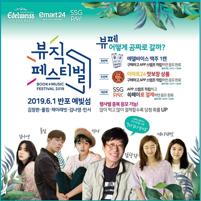 보도자료 이마트24, 뷰직(Book+Music) 페스티벌 진행 이마트24는 오는 6월 1일(토) 한강 예빛섬 야외무대에서 ‘뷰직 페스티벌’을 진행한다. 2019.05.03 이마트24