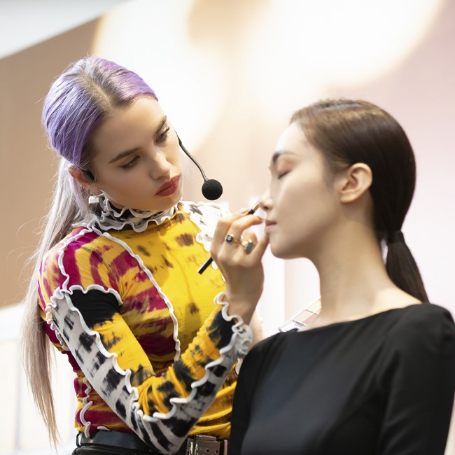17일, 강남구 청담동에서 진행된 비디비치 ‘톡식 더 뮤트’ 론칭 행사장에서 메이크업 아티스트 ‘이사마야 프렌치’가 가을 메이크업 시연을 진행했다.