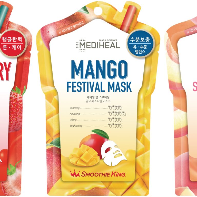 보도자료 스무디킹, 메디힐과 손 잡고 마스크팩 3종 출시 건강 음료 브랜드 ‘스무디킹’이 마스크팩 브랜드 ‘메디힐’과 협업을 통해 마스크팩 3종을 선보이며 푸드메틱 시장에 출사표를 던졌다. 2018.11.20 신세계푸드