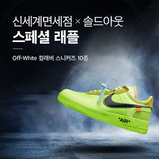 신세계면세점x솔드아웃, 오프화이트 컬래버 스니커즈 스페셜 래플 실시신세계면세점은 무신사의 한정판 마켓 ‘솔드아웃(soldout)’과 손잡고 오프화이트(Off-White)의 한정판 컬래버스니커즈를 무료로 증정하는 ‘스페셜 래플 이벤트’를 실시한다.