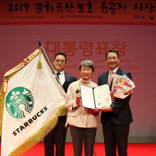 스타벅스, 2019 문화유산보호 유공자 포상 대통령 표창 수상㈜스타벅스커피 코리아(대표이사 송호섭)가 [2019년도 문화유산보호 유공자 포상] 시상식에서 대통령 표창을 수여 받았다.